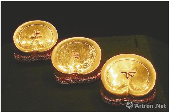 ?;韬畹镊胫航鹨渤鱿止吧稀薄爸小薄跋隆泵?。三枚麟趾金规制统一,其上铭文的字体、结构与马蹄金基本一致;三个字的大小、规格、形态、笔画、结构、气息较为统一,有别于马蹄金,这又是一个不解之谜。正因如此,马蹄金、麟趾金成为了?;韬钅怪凶钗胫诓煌奈奈铩?/p>