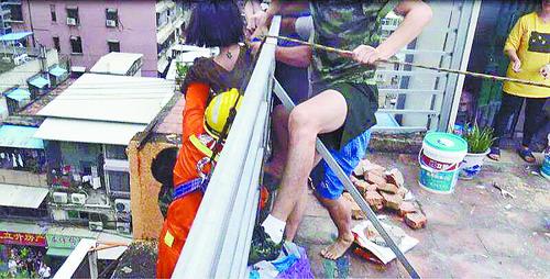 离地20米女子欲轻生 90后消防战士空中飞身救人