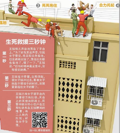 他,悄无声息地飞身一跃,再猛冲上前紧紧箍住欲轻生的女子;他们,拽住他腰间的绳索,帮忙托起女子……昨日,在故宫路鑫故宫公寓附近、距离地面20多米高的一个不足十平方米的小平台上,消防战士和民警,在二十秒内,默契又神速地救下一名想跳楼的女子。