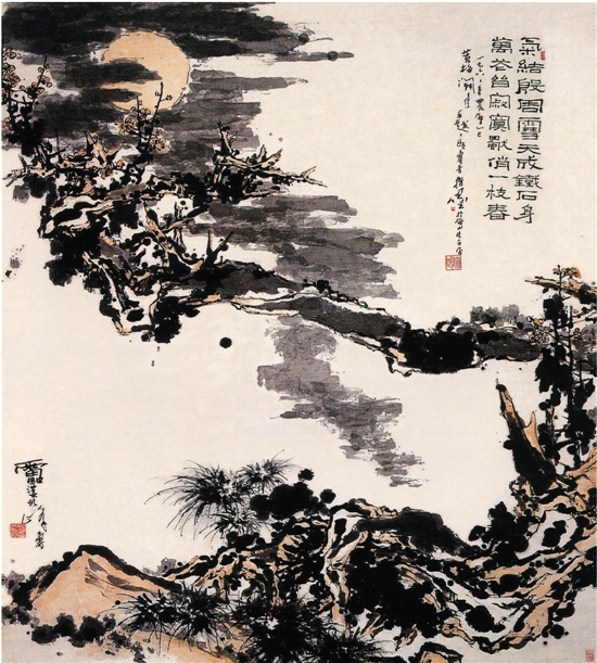 潘天寿 梅月图 中国画(指墨) 182×152cm 1966年