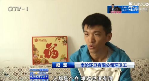 臧坚,今年30岁,是山东青岛李沧环卫公司的一名环卫工人。谁也想不到,这位穿着环卫制服的小伙子曾是一个程序员,精通网络编程、APP后台制作。然而,为了照顾患肺癌晚期的母亲,他辞去了网络公司程序员的工作,在自家楼下,当起了环卫工。作为家里唯一的男人,臧坚庆幸自己的选择。他说:"虽然看上去当环卫工是自毁前程,但有些东西失去了,就再也找不回来了。"