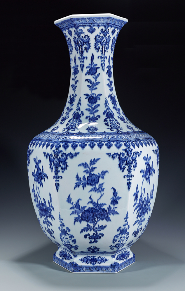 此外,拍品中吴冠中《日出》来源清晰,为八十年代代表作品;司徒美堂上款的齐白石《荷花图》笔墨老辣,为齐老的晚年精品力作;傅山、吴历为尤侗作《鹤栖堂图》著录累累尤为珍贵;清乾隆青花三多花卉纹六角大瓶,成品量极少,属于宫中高档式样陈设器之一,尽显皇家气象。15世纪银嵌松石四臂观音、清雍正青花灵芝摩羯耳杯、商代玉羊、商代青铜提梁鹗卣,件件精品。
