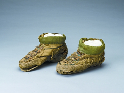 一些少数民族的文物也入选了此次展览。比如新疆文物研究所收藏的一件勾花皮鞋,是1995年在尼雅遗址出土的。经考证,这里是汉晋时期精绝国的故址,是西域“丝绸之路”南道上的一处东西交通要塞。