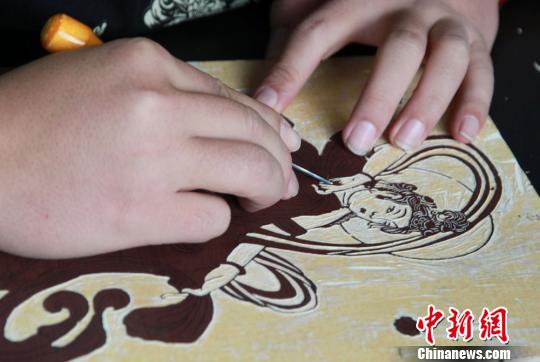 资料图:各式各样的刀具、木板和油彩,摆满桌子,兰州交通大学学生正在制作“版画”?!×跤裉摇∩?/p>