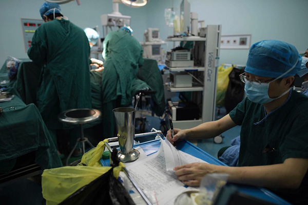 一台手术做完后,江跃全仔细检查手术记录,最后签上自己的名字。