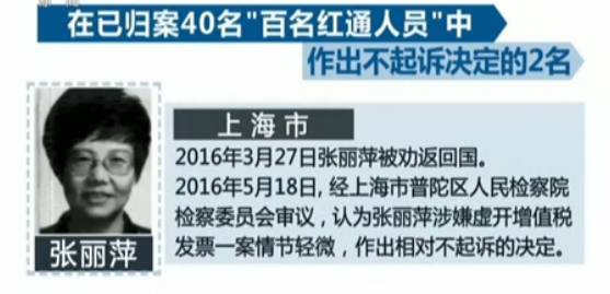 上海市张丽萍案,2016年3月27日张丽萍被劝返回国。2016年5月18日,经上海市普陀区人民检察院检察委员会审议,认为张丽萍涉嫌虚开增值税发票一案情节轻微,作出相对不起诉的决定。