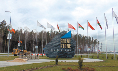 白俄罗斯首都明斯克以东约25公里中白工业园入口处,矗立着一块巨石,“巨石”就是工业园的名字,寓意“将中白工业园打造成奠定中白合作的友好巨石”。