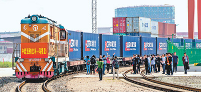 中欧班列自2011年3月开行以来,目前已累计开行3000多列,成为国际物流陆路运输的骨干通道。图为4月15日,X8024次中欧班列从浙江义乌西站徐徐开出。人民日报记者 史家民摄