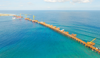 作为“21世纪海上丝绸之路”重点项目,中马友谊大桥连接马尔代夫首都马累和机场岛,天堑变通途,让马尔代夫人民的梦想变为现实,也成为中马友谊的重要见证。图为大桥首个墩身成功浇筑。 新华社发