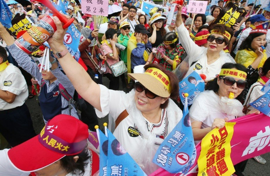 国民党下午举行“妈妈请您要保重。捍卫无毒家园”游行,由党主席洪秀柱领军上街抗议。(图片来源:台湾《联合报》)