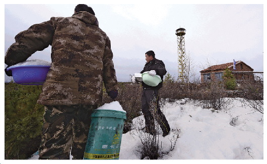 >因山路上都是“冰包子”无法下山拉水,瞭望员只能化雪水饮用。