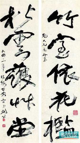 高剑父书法造诣之高,岭南近代还无人能出其右。其书艺之雄健豪迈,其个性风格之鲜明,也在他绘画成就之上。在我看来,高剑父书艺之可贵,在于一种气度、一种精神。其纵横分披和郁勃苍莽,便是岭南风骨。