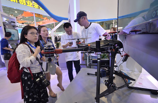 5月10日,2017全球创新创业交易会上,无人机项目引人关注。视觉中国供图