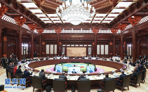 5月15日,“一带一路”国际合作高峰论坛在北京雁栖湖国际会议中心举行圆桌峰会,国家主席习近平主持会议并致辞。 新华社记者 马占成 摄