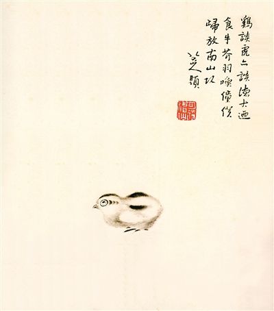 在这里,我举个例子,八大山人一个花鸟册页其中有幅《小鸡图》构图非常呆板,整个画面只有一只小鸡在画正中间。他故意这样处理,因为他画这个小鸡图,画的是他对这个世间的冷漠,那种心理,他认为只能用这种方法进行表现。就是假若你是一只小鸡,你来到这个世界上,站在中间一看,哪里都不着边际,这种无助、孤零零的心态,他用这种特定的构图来表达,就非常贴切和吻合。而这样做,就是大师的不拘一格和狂傲性格。现在,老师教学生一讲构图,都是要求主体不能放正中间,那怎么可能产生这种效果,还有这种心理呢?