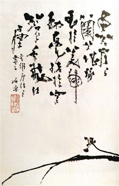 同样,石鲁画过一张画,画面只有三个兰花瓣,后面是像火柴一样被烧焦的一个焦墨花蒂,他画这个的时候,只写个名字石鲁,连印章也没画,这是给郑乃公式老师的一幅小作品。当时,我刚从东北调回来,去郑乃光老师家里,问他,听说石鲁疯了。他说,你看看这个:“石鲁他疯了没有?”我一看这张画,心里就一下子明白:“石鲁没疯,他绝对的清醒,他是自我标榜——我这么清白的人,被人把花头掐掉随意扔地下,正好扔在正中间……”石鲁那种自白,才叫艺术家。他同样学习八大构图,但却用得极为高妙。八大画小鸡,我这是兰花,就解决问题了。啥叫聪明,就是石鲁看过八大小鸡图,知道其中的高度。他绝对不会人家画个小鸡放中间,我就画一个麻雀放在中间,只是徒有表面的复制和模仿。而是把自己在“文革”时独特苦难悲怆的际遇和古代八大进行了一个跨时空的“神通“,他将这种情绪宣泄在画面中,就采取了这样一种类似的构图。巧妙的是,他把八大的小鸡换作了兰花,把动物化为植物,这在艺术创作中,就显得很俏皮了,也有更多别的趣味隐喻象征意义了。