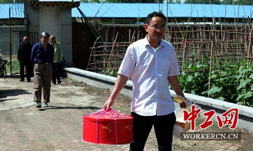 走出校园,走进敬老院,是魏金山在学生中开展家风和感恩教育的有效方式。今年母亲节前夕,新蔡县陈店镇敬老院98岁的孙刘氏怎么也不会想到,魏金山会早早提着一个大蛋糕,专门赶到敬老院来给她过生日,并祝福她母亲节快乐。老人一边吃着蛋糕,一边微笑着说:“好甜,好酸,我吃的好饱好饱!”