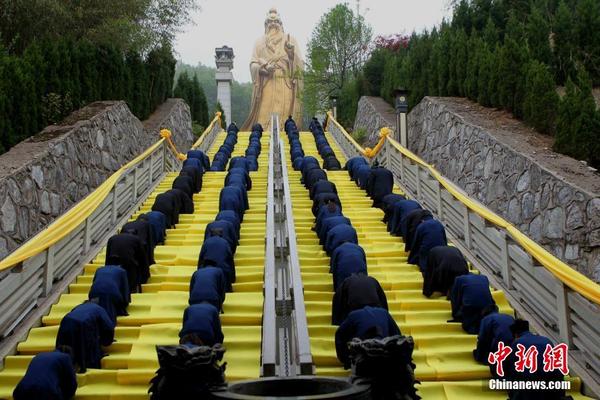 4月25日,河南洛阳老君山举行仙境朝圣节,老君山老子文化苑世界最高老子像前,来自四面八方的数百道士进山朝拜道祖老子。