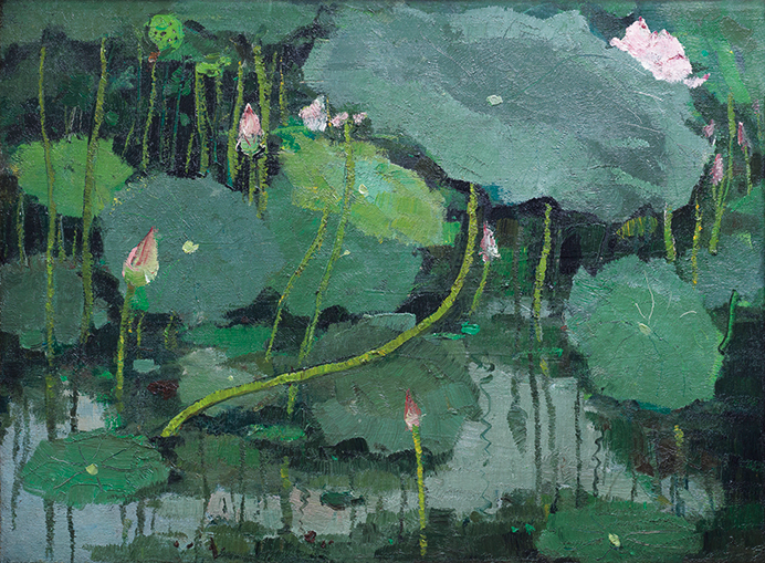 二十世纪初期现代油画的先驱者勇于向西方借鉴学习,在中西艺术融合的道路上积极求索。此次秋拍有幸征集到了吴冠中、吴大羽、林风眠、方君璧、吴作人、卫天霖等老一辈艺术家的作品。“吴冠中专题”作为保利拍卖的强势项目,每经推出均能成为市场的关注焦点。罕见于市场的吴冠中七十年代油画作品,此次将有多件推出。1972年的《苇塘》描绘深秋时节枯黄的芦苇荡,虽有萧瑟凋零之意,却也包含质朴浓郁的乡土之情。《龙须岛》是1976年吴冠中带领学生到胶州湾“开门办学”期间所做的数幅精彩佳作之一,早年赠予妻子朱碧琴妹妹朱宝琴,并珍藏至今。作于1974年的《红莲》描绘荷塘一隅,画面构图饱满,虽以荷叶为主体,却枝枝姿态各异,虽以绿色为主调,却微妙而富有变化,隐藏其中亭亭玉立的红莲娇嫩优雅,与水中倒影相得益彰,小小的荷塘却能看到一个多姿多彩的小小世界。与70年代以写实为基本特征的风景画不同,90年代的创作不局限于对景写生,而是融入了更多想象的内容和表现性因素,从而完成了艺术家更为自由的表达。80年代吴冠中曾赴沈园游览,感念于陆游与唐琬的凄美爱情,久久不能忘怀。1998年创作了《梦沈园》,将略显荒芜的沈园描绘出了惠风和畅,花红柳绿的难得春光,近景中一对嬉戏的白鹅更是为画面增添了浪漫与美好。