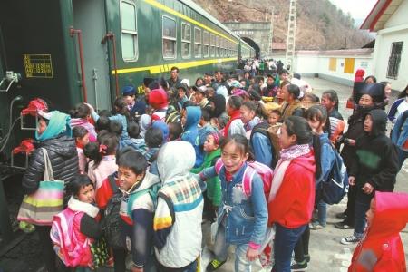 在瓦祖站上车的学生们。
