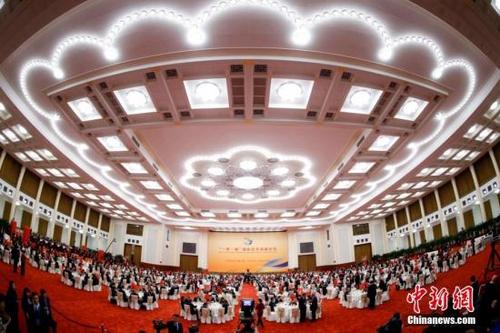 资料图:5月14日晚,“一带一路”国际合作高峰论坛欢迎宴会在北京人民大会堂举行。中新社记者杜洋摄