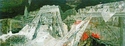 翻开中国古代绘画史册,我们会看到唐代之前的绘画,图像平展博大,造形简约浪漫,色彩浓郁绚丽。宋代之后,由于复杂的历史原因,中国绘画渐渐走向小型的卷轴画、工笔画和水墨画。博大浓郁的色彩渐渐淡出画坛。过去,岩彩绘画遇到中国画界误解的主要原因就是认为其是日本画。其实,岩彩绘画的文化身份始终是清晰的,中国文化精华自唐代流传日本,20世纪末回归本土。中国的龟兹、敦煌、炳灵寺和麦积山等石窟壁画就是典型的中国岩彩绘画,它们都是以自然馈赠——古代称之为“矿物色”,今天称之为“岩彩”——绘制的。这种以不透明的天然岩彩,大面积写意平涂的中国经典绘画方式,就是岩彩绘画的语法特征。以色面作为基本图形,通过层面叠加,逐渐深入的表现方式,就是岩彩绘画的创造原点。