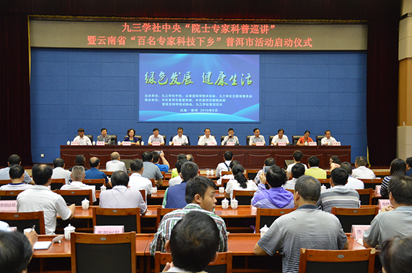 2016年10月,九三学社中央“院士专家科普巡讲”暨云南省“百名专家科技下乡活动”在普洱举行?!霸菏孔铱破昭步病笔锹涫倒岢咕湃缰醒胫飨舻鹿赜凇耙钥蒲占巴贫萍即葱?,推进九三学社参与‘一带一路’战略社会服务工作的重要形式”。