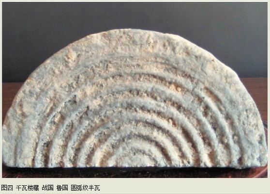 古人用线意境邃密宏远,技术精湛到无与伦比。我珍藏的一方战国时期鲁国所出的半圆瓦当,朴实的圆弧线从中心开始层层外延,画面简练,意境阔大。(见图四)诗经《小雅》有:“如月之恒,如日之升”句,描写宇宙万物欣欣向荣,壮阔无比的气象,此瓦纹饰足可担当。小小的一片瓦面仅用简单的几条弧线装饰,看不到繁缛的雕琢痕迹,凝练肃静,到达高贵浑穆、天高地远的境界,已臻极品。设计此瓦的作者,满满的自信其实就根基于这根浑朴圆润、意蕴无穷的圆弧线,“美”就是如此的单纯。有这样的好老师,日后的汉瓦怎会不精彩?顺流千年,用“线”神化为魂魄的传统艺术又怎会不精彩?