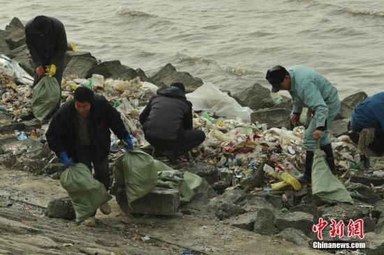 资料图:生活垃圾威胁上海饮用水源地,长江口清理垃圾。张亨伟 摄