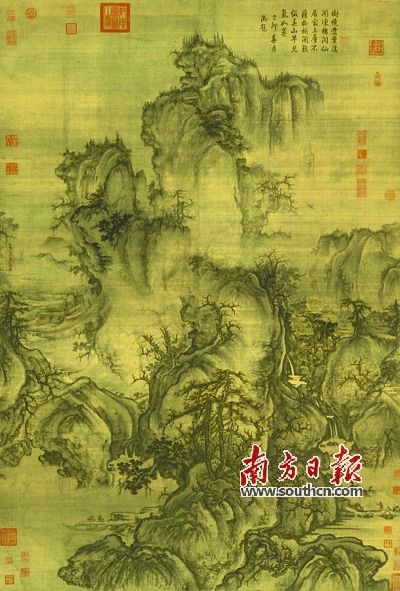 北宋郭熙《早春图》,以全景式高远、平远、深远相结合之构图,表现初春时北方高山大壑的雄伟气势。