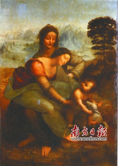 达·芬奇《圣·安娜与圣母子》,画家将图中3个人物结合成金字塔状,各个形体像茎叶和树枝般自然地彼此延展。