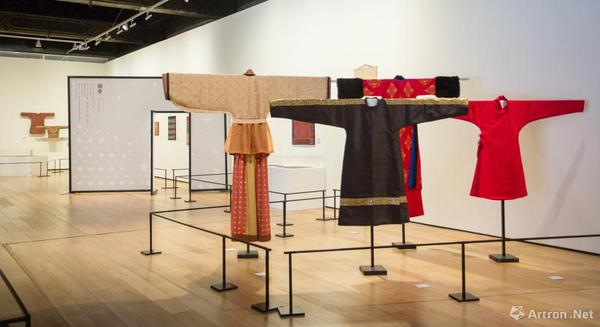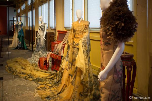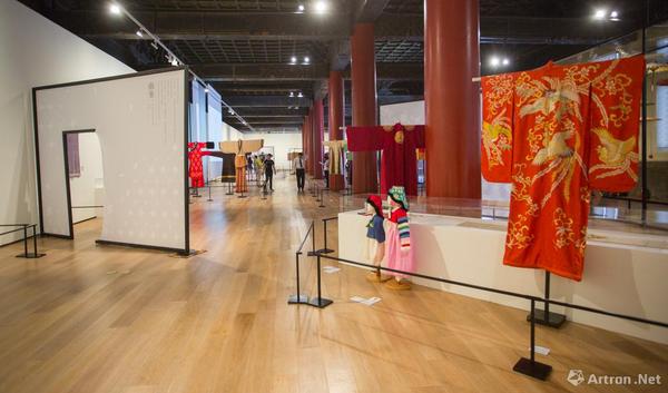 作为展览的引子和铺垫,“衣邦天下”展区通过桑蚕为业、汉唐雄风、华美致远和当世华采展示了“桑蚕之国”(中国),和“锦绣世界”(国际)中串联起丝绸之路沿线多国的历史文物和特色服饰,是对于“衣文化”的历史追述,这也映衬了当下在“一带一路”背景下构建文化对话的现实图景。中国丝绸博物馆,北京中华民族博物院提供了珍贵的藏品,以及“无用”品牌出借的从民间收集而来的传统手作油纸伞,成为古风服饰展出的雍容背景。从历史的、传统的视角切入展览,从追述历史“衣文化”的角度出发围绕“衣袍”将过去、现在和将来形成一个完整开放的整体,这也是太庙艺术馆展览一贯的叙事风格。
