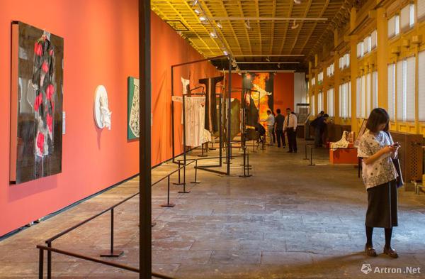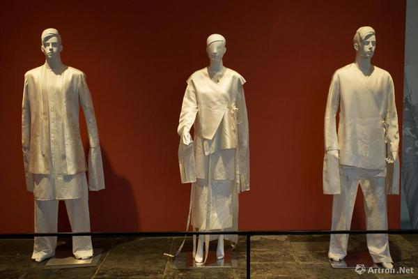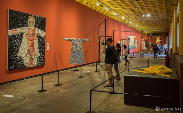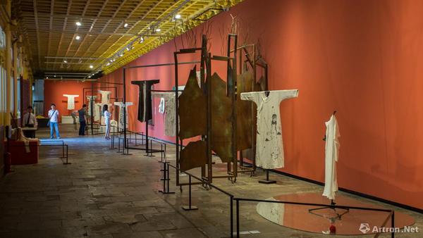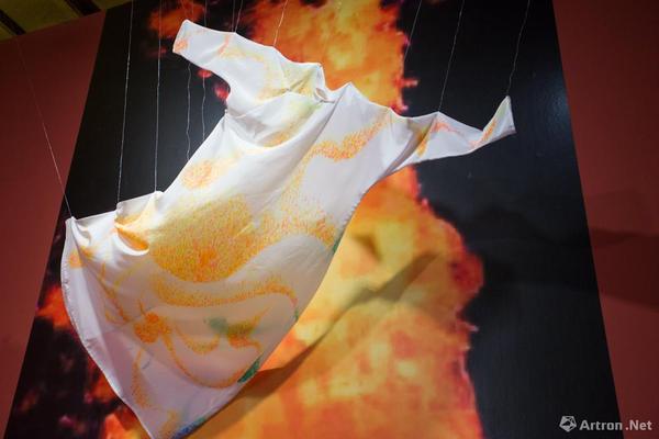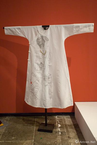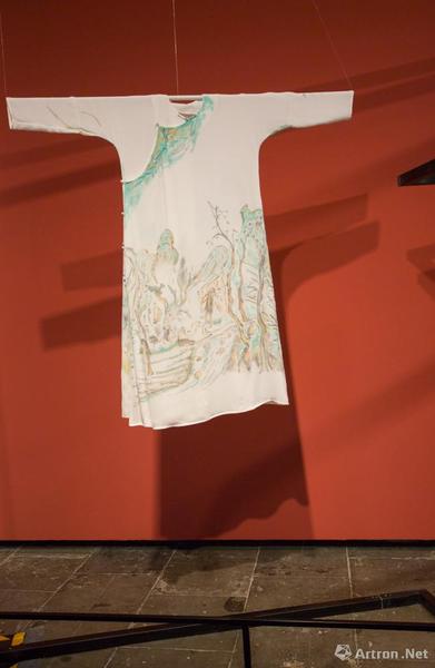 “中西联袂”部分展览由章燕紫策划,展览邀请了30余位中西方有影响力的艺术家以中国传统丝质长袍为“画布”或“元素”,运用个人语言和观念进行创作。这些来自中国、意大利,印度等丝绸之路沿线国家的艺术家们,以衣袍为载体,以绘画、装置、摄影为手段,创作出带有强烈个人观念和面貌形态多样的跨界之作。这些富有张力与非凡想象力的作品,展示了现成品作为一种媒介语言的活力,以及传统文化在当代语境下的多种可能性。“蜉蝣之羽,衣裳楚楚”,服饰除遮羞避寒、美化修饰外,也在社会关系结构中成为身份与气质的象征。此次艺术家实施创作的中式风格衣袍,并没有固定以某个朝代为蓝本,而是参照中国历代经典服饰,经过提炼和设计,抽离出象征着文化的传承和融合的意象丝袍。展览营造空间,东西方文明在这里相互碰撞与激发,从更为丰富宽广的维度唤起人们的思考和想象。