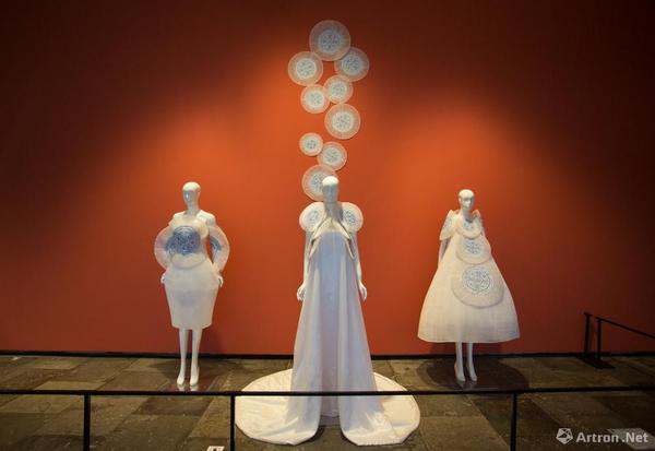 “衣裳之会”部分展览由吕越策划,展出20余位擅长以衣服作为题材的时装艺术家取服装之型、以衣为魂的时装艺术作品。时装艺术是上世纪六七十年代诞生在美国的一种新锐艺术形式,通过“可穿的艺术”运动对工业化、批量化提出反思,时装艺术突破服装外在设计的边界,着重思考服装背后的文化、思想,这样的服装有着创作者的情感,是具有灵魂的作品。时装艺术体现的是时装与艺术的结合,是以服装形式为载体的艺术表达方式。展览同时也展示时装艺术在探索材料更新方面的现状,打破布料局限,出现“软硬兼施”的局面,以及那些用玻璃、陶瓷,金属等硬性材料造就了一批“不能穿”的衣服,这更清晰的提示了时装艺术作品不以是否“能穿”作为作品品格考量的重点,艺术家的着力点转移到对设计社会价值、文化价值和设计立场的思考。
