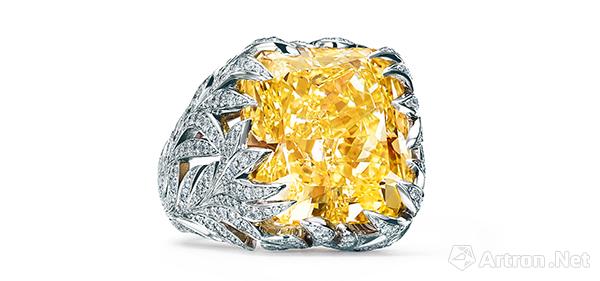 铂金镶嵌26.65克拉艳彩黄钻及钻石戒指,来自蒂芙尼2017 BlueBook“丛林幻境”高级珠宝系列。