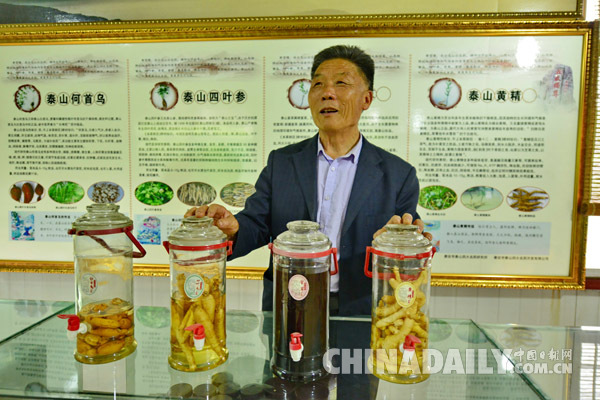 张玉清用泰山名药泡制的药酒。鞠传江摄影