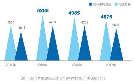 同样,每年毕业季,高校毕业生的收入问题也备受关注。该调查显示,2017年应届毕业生的实际签约平均月薪为4014元。