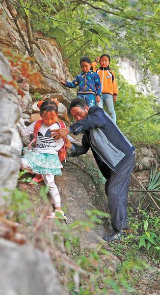 “4公里的山路,最高船头山、最险蜂子崖,杨绍书老师每天带着学生往返一遭,硬生生被他们蹚出一条小道来?!苯鹄颊蚪坦苤行闹魅我υ扑?。