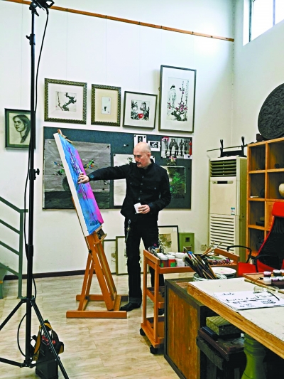 搬到这里后,很多年轻艺术家知道明星来了,常跑来和他聊天,聊艺术,聊影视与艺术的关系。一些艺术家去国外参展前,还会拿来自己的衣服问是否合适。他还记得一个寒冷冬日在艺术区闲逛,发现一个做中国传统艺术的艺术家正在室外做雕塑,房间里连暖气都没有?!拔液退?,你做作品的成本、出国参展费用,都不用考虑。我帮你把作品带到国外参展,如果有人收藏,我把钱给你带回来?!彼两袂逦堑媚歉瞿昵崛思ざ貌煌4曜潘?,“其实我该谢谢他们,他们对绘画近乎痴迷的狂热,让我知道自己年过半百后,还能做些什么?!?/p>
