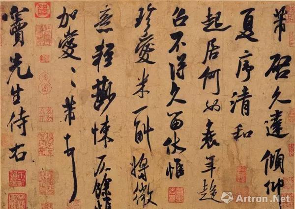 又比如说,他和诸多当时有名的匠人关系都不错,并让他们制作了,几榻架柜奁盒各种器具并在其上都刻上铭识,精巧得像秦汉之物;再比如说,他和乾隆这个同样爱收藏的大收藏家有一个相同的爱好——爱盖章,听说是检阅一遍就盖一次章。这个爱好非常受后人诟病,一是有碍观瞻,一幅画里那么多章总是不好看;二是艺术史学家们感叹,你有那么多时间盖章,怎么没空去梳理下自己的藏品,用点心就是后人拼尽一生心力才能整理出来的艺术通史,对他可谓是又爱又恨。