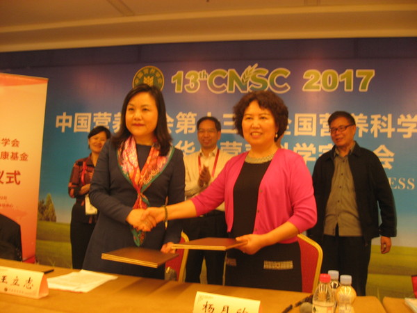 大会期间,中国营养学会理事长、大会主席杨月欣(右)与百胜餐饮负责人王立志举行“健康基金”签约仪式,以更好地促进中国居民科学膳食,增进健康?!¤骱 ∩阌?/span>