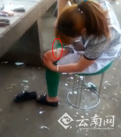 网友爆料称,彝良县江韵豪庭小区旁堰坝塘菜市场的一家猪肉摊上,女摊主正用切肉的刀刮脚底的死皮,引发了当地网友的热议。网友发布的视频显示,在一个喧闹的市场内,一名黄发女子正坐在椅子上用一把小刀来回不停刮自己的脚底,其身前的水泥案板上放置有几块肉以及切肉的工具。云南网注意到,视频系路人,从这名女子左侧拍摄,当路人走到其身旁时,她仍然在埋头用刀刮脚底,丝毫没有察觉。