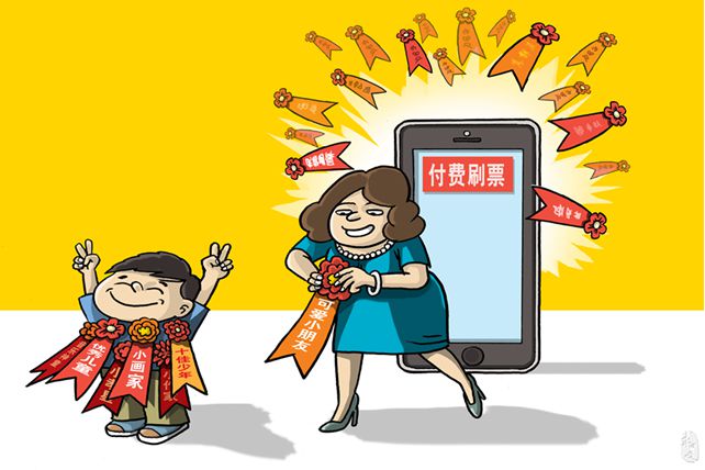 某幼儿园举办微信评选“最可爱小朋友”活动?;竦霉鸸谡呤墙鹎⑵薄八ⅰ背隼吹慕峁N⑿湃Ω髦中『⑼朴牌姥』疃皇痹救爰页さ氖酉?,时时检验家长们的“以身作则”。忘记价值观日常潜移默化的影响,刷票赢来的自豪无形中扭曲了孩子对能力与荣誉、人脉、金钱之间关系的认知。用金钱“刷”出来的价值认定在家长默许中带给孩子的不是有益启迪,而是虚荣取巧。炫耀远离能力底座,歪曲的价值观影响的不仅是孩子的当下,可能还有未来。