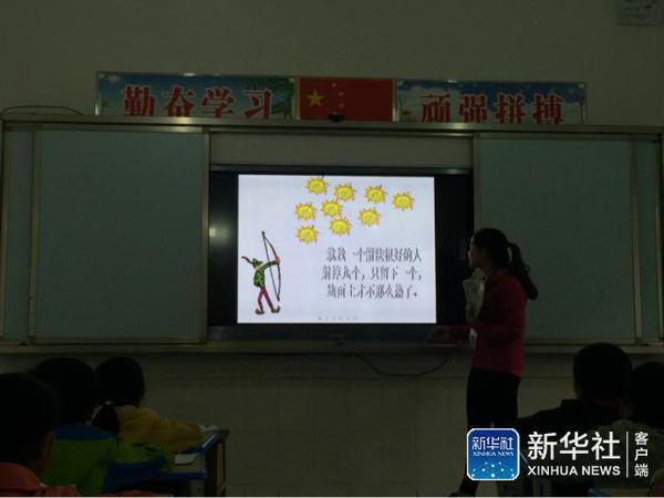 小花老师正在讲的课是《太阳》,这是一篇说明文,课文中提到太阳距离地球有多远时,小花老师举例子,咱们班里离学校最远的同学要走8公里回家,太阳跟地球的距离要远得多。记者 高洁 摄