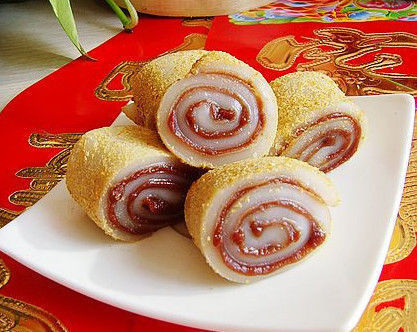 参考翻译:L dagunr-- Glutinous Rice Rolls Stuffed with Red Bean Paste