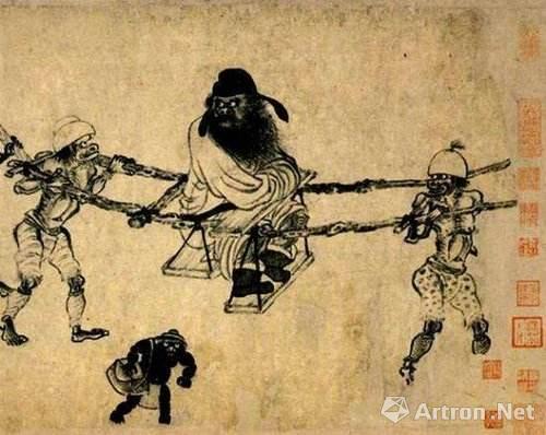 此外,还有陈洪绶笔下个性十足的高古人物画,以山水画著称的周臣曾画过《流氓图卷》、罗聘所作的《鬼趣图》,南宋李嵩《骷髅幻戏图》也挺有趣的。