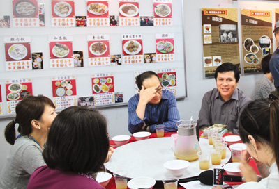 台北某观光夜市为了留住大陆游客,设计了小吃桌餐,可让游客坐下来多品尝几道。