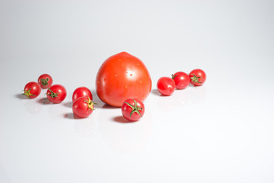 催熟的西红柿比较像桃子,一般都是尖顶,而顶部凹陷进去的西红柿是自然熟的,相对安全一些。
