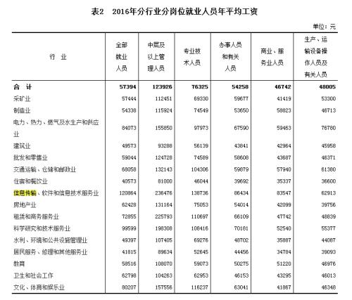 2016年全部就业人员年平均工资57394元 增长7.0%