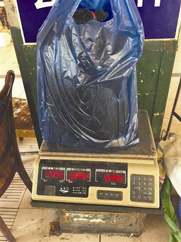 在市场一楼设立的公平秤前,他分别将三个袋子打开,并倒出了一些水,然后连同黑袋子一起再上秤。